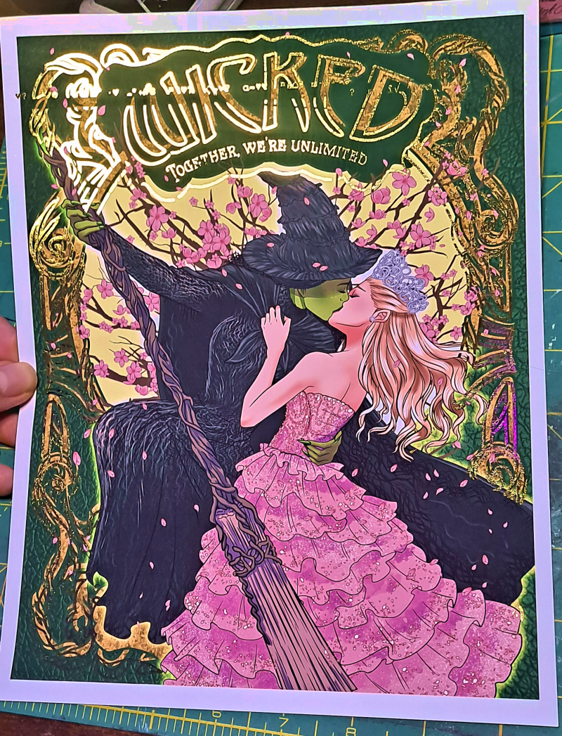 Pink goes good with green! Whether you're a fan of the Wicked musical or the recent live-action movie (starring Cynthia Erivo and Ariana Grande, who were my visual muses for this piece), this gorgeous high-quality print is sure to turn heads and remind you that even gravity can be defied.